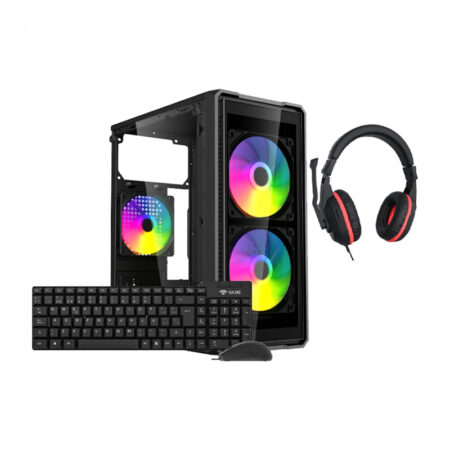 GABINETE KIT GAMER OASIS INFERNO (INCLUYE FUENTE, TECLADO, MOUSE Y AURICULARES)